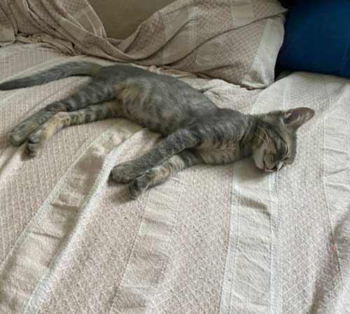Loki, un giovane gatto maschio, ha avuto la brillante idea di sgranocchiare un ciuccio fino a farlo a brandelli ed ingerirne una parte troppo voluminosa perché potesse attraversare lo stomaco e l’intestino indisturbato.